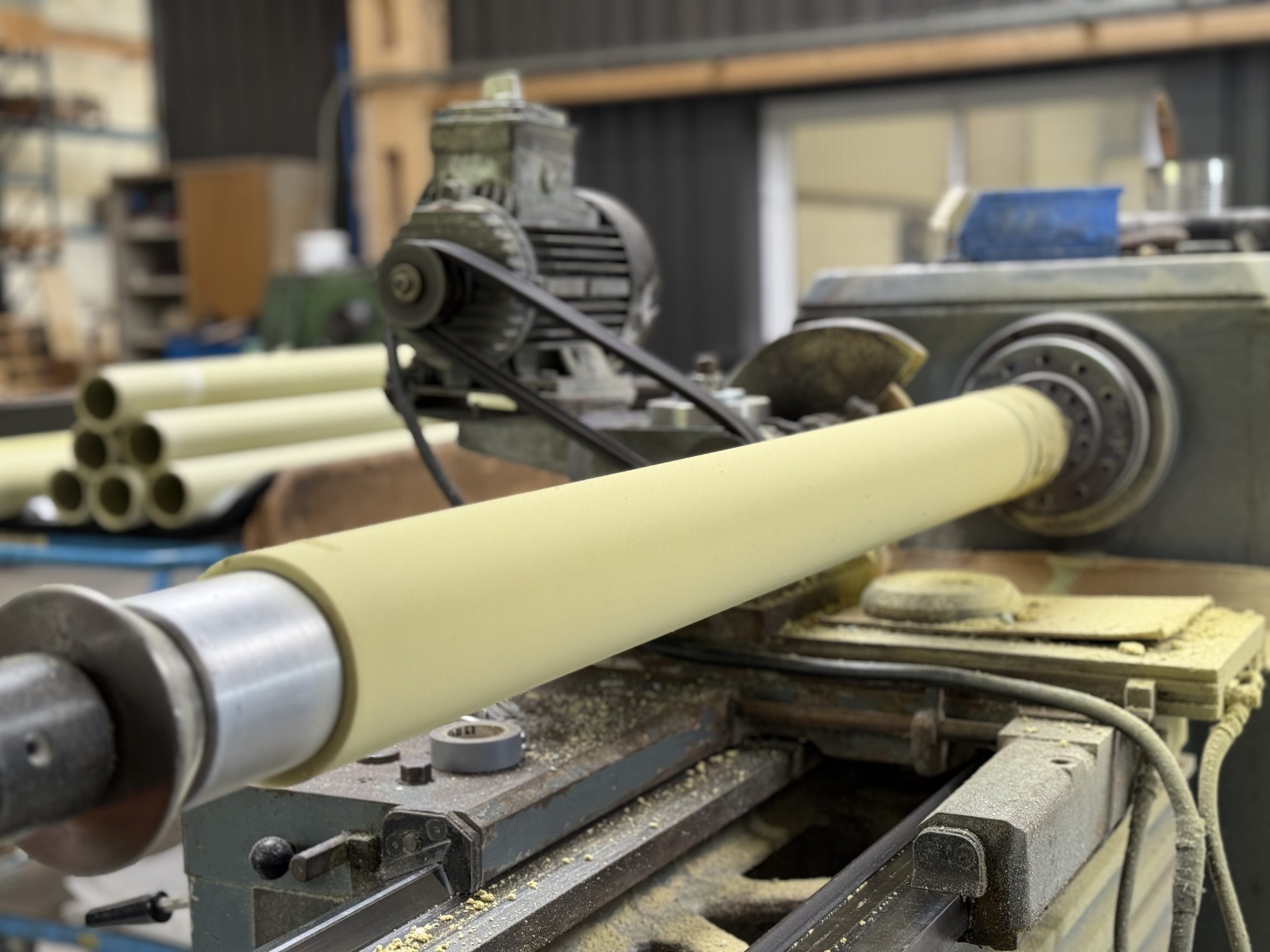Cette maîtrise s’appuie sur plus de 35 ans d’expérience en revêtement élastomère de rouleaux industriels, acquise auprès d’industriels en France et à l’international – agroalimentaire, énergie, impression, métallurgie, emballage, plasturgie, papier-carton et bien d’autres secteurs, dans des environnements techniques souvent exigeants. Elle est renforcée depuis 2025 par l’intégration de SACD, spécialiste du garnissage et de la rectification de cylindres industriels, qui élargit nos capacités de rectification de précision à ±0,05 mm.