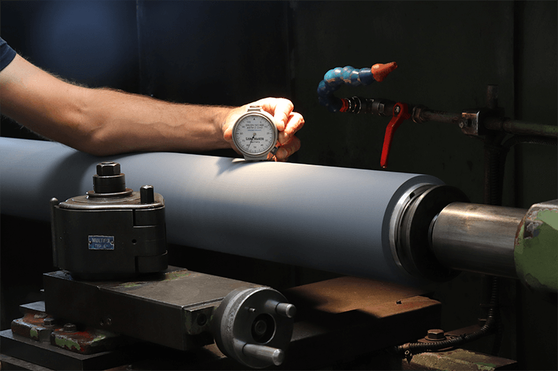 La performance d’un rouleau ne dépend pas uniquement du matériau. Elle repose également sur sa conception globale : qualité de l’insert métallique, adhérence du revêtement, géométrie, état de surface et précision de rectification.